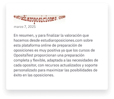 En OpositaTest puedes realizar test de prueba gratis de cada oposición para conocer cómo funciona la plataforma, nosotros a este test le llamamos demo y puedes completarlo tantas veces como quieras. Para hacer test por temas, por materias, simulacros de examen, y muchos otros... deberás suscribirte a alguna de las oposiciones disponibles en cualquiera de las duraciones que ofrecemos.